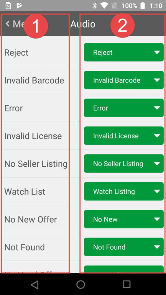 You select which audio clip (2) to play for certain scenarios (1).