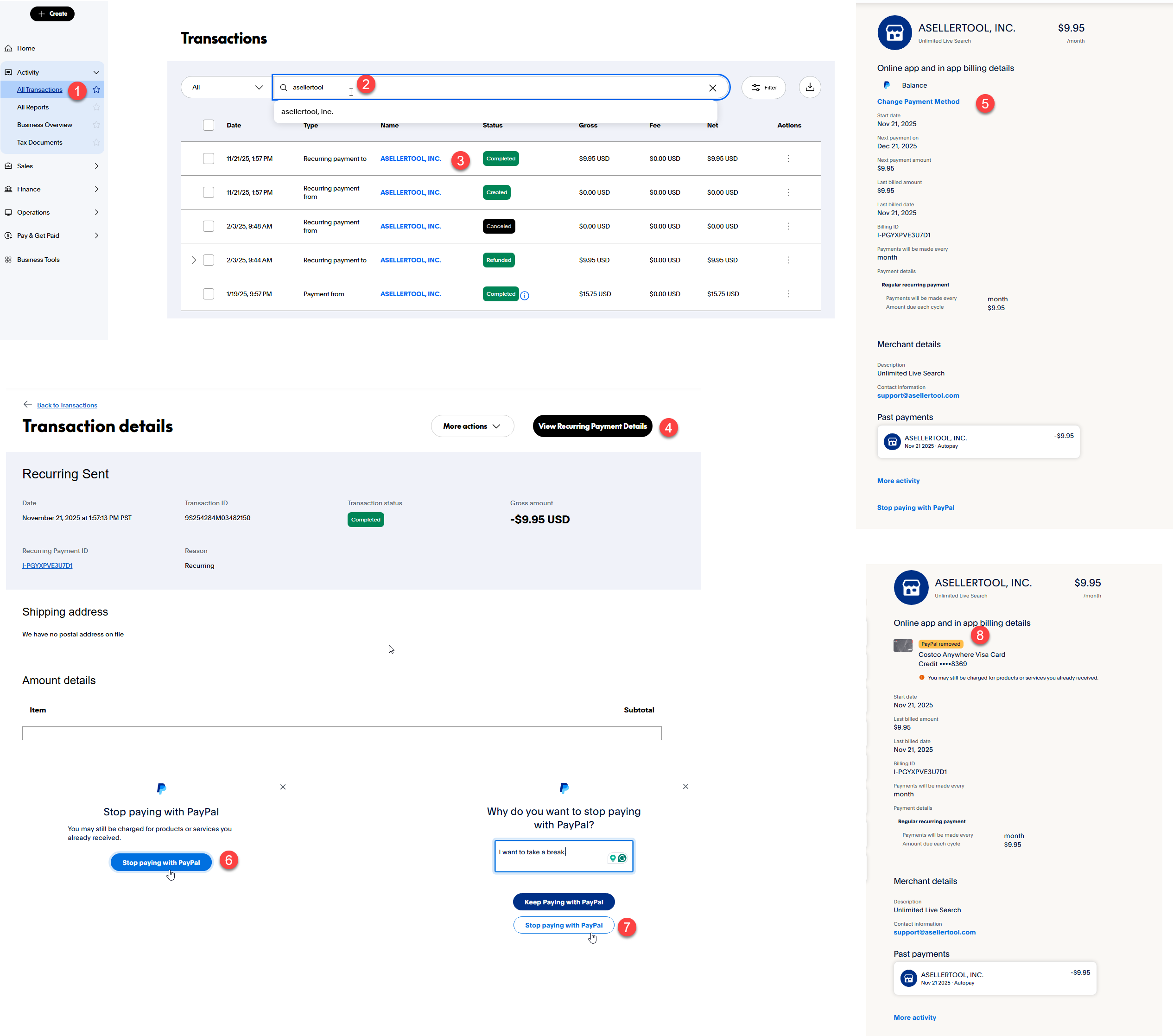 - Find a recurring payment to ASELLERTOOL. INC and click on it