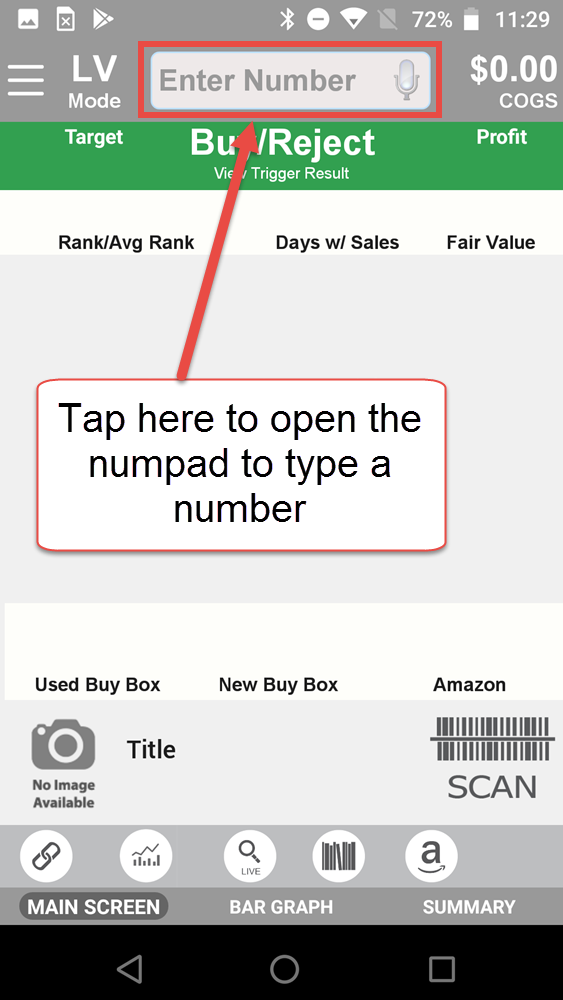 If an item does not have a barcode to scan, you can tap inside Enter number to open the Numpad. You can skip the X if the number ends with the letter X.