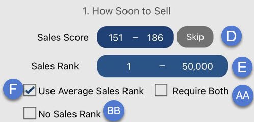 - How soon will this item get sold? You can use either “Sales Score” (D) or “Sales Rank” (E) to determine.